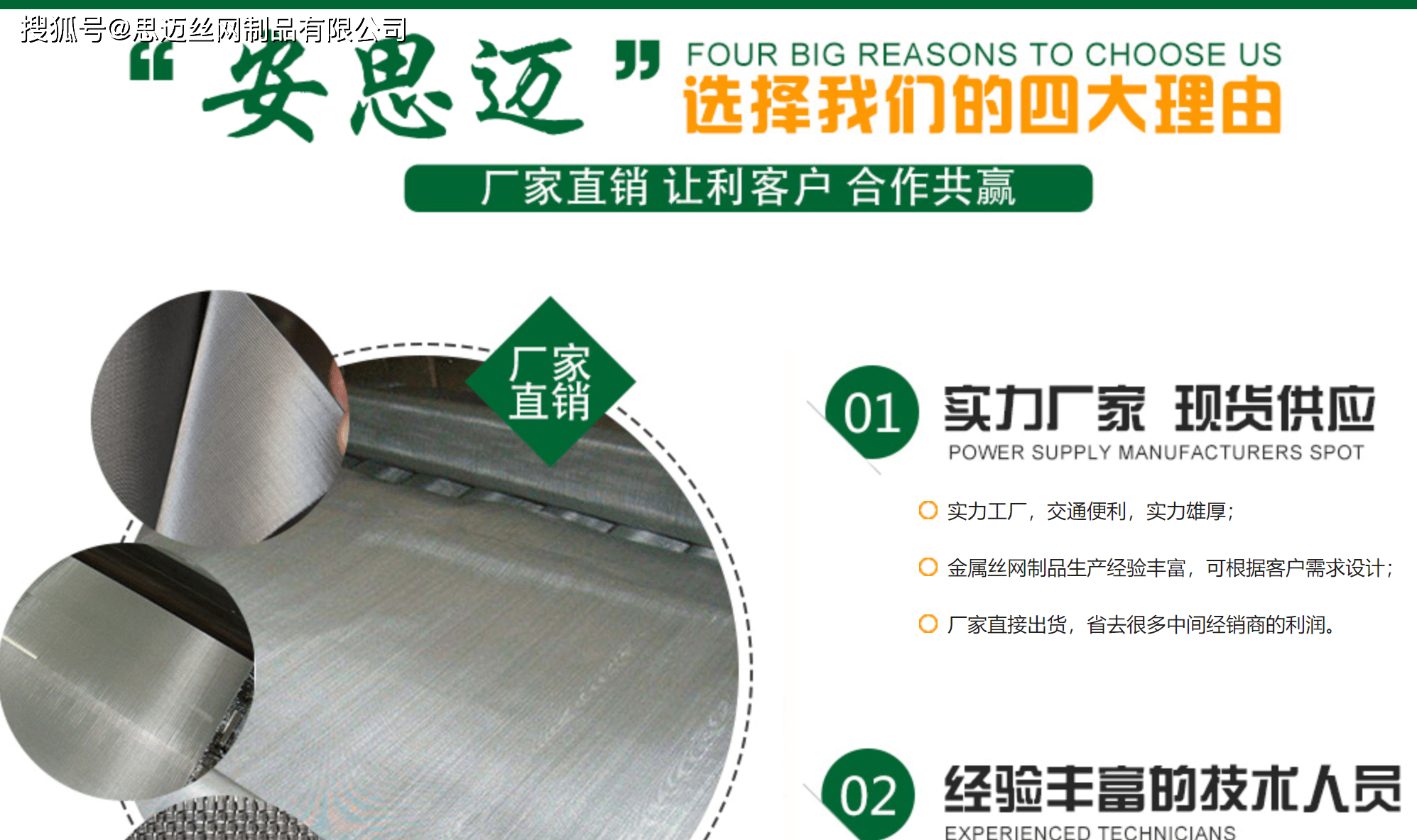 安思邁高端環(huán)保絲網(wǎng)產(chǎn)品倡導(dǎo)者-專注于耐高溫耐腐蝕系列絲網(wǎng) ,安思邁品牌絲網(wǎng)是一家專門生產(chǎn)耐高溫金屬網(wǎng)系列以及耐腐蝕金屬網(wǎng)系列產(chǎn)品的廠家,安思邁始終堅(jiān)持產(chǎn)品第一,質(zhì)量第一。主要產(chǎn)品有鐵鉻鋁網(wǎng)、不銹鋼網(wǎng)、鎳鉻絲網(wǎng)、蒙乃爾絲網(wǎng)、英科耐爾絲網(wǎng),鎳網(wǎng),銅網(wǎng),鈦絲鈦板網(wǎng)、哈氏合金絲網(wǎng)等稀有特殊類金屬網(wǎng)產(chǎn)品生產(chǎn)經(jīng)驗(yàn),擁有專業(yè)的生產(chǎn)設(shè)備,技術(shù)力量雄厚,對生產(chǎn)實(shí)行規(guī)范化管理,對產(chǎn)品實(shí)行科學(xué)化管理,特殊規(guī)格可按樣品視圖紙制造。我們將不斷開發(fā)新產(chǎn)品、增加技術(shù)含量、擴(kuò)大生產(chǎn)能力,降低生產(chǎn)成本、使之既能保證大批量定單的及時供貨,又可為多種小數(shù)量的客戶進(jìn)行生產(chǎn)。在誠信雙贏的基礎(chǔ)上,憑借良好的企業(yè)信譽(yù),穩(wěn)定的售中、售后服務(wù),與更多的國內(nèi)外客戶建立一種友好、愉快、長期的合作關(guān)系。